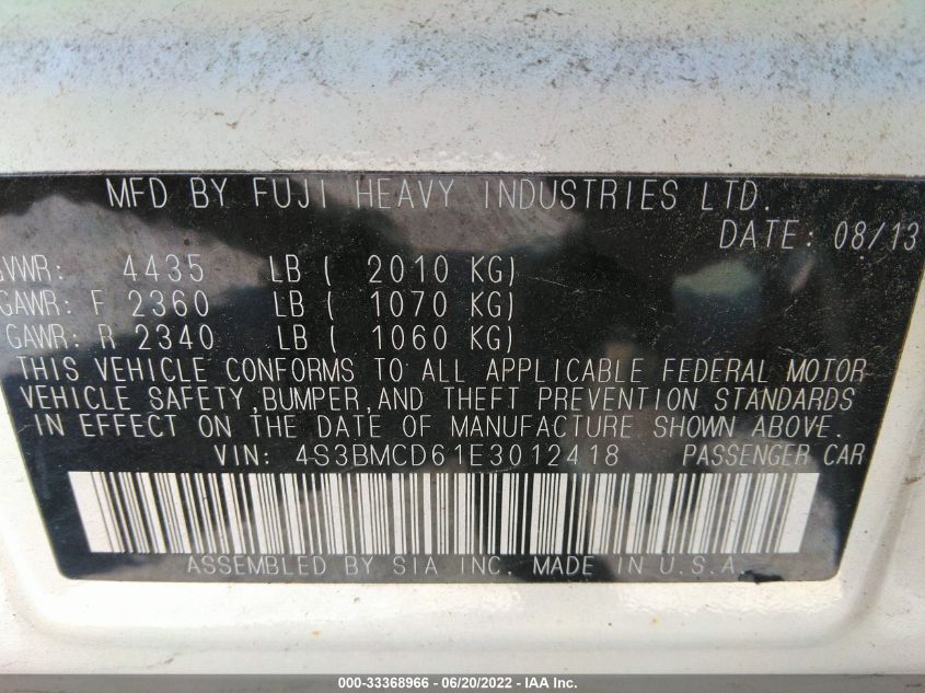 Описание 2014 SUBARU LEGACY 2.5I PREMIUM